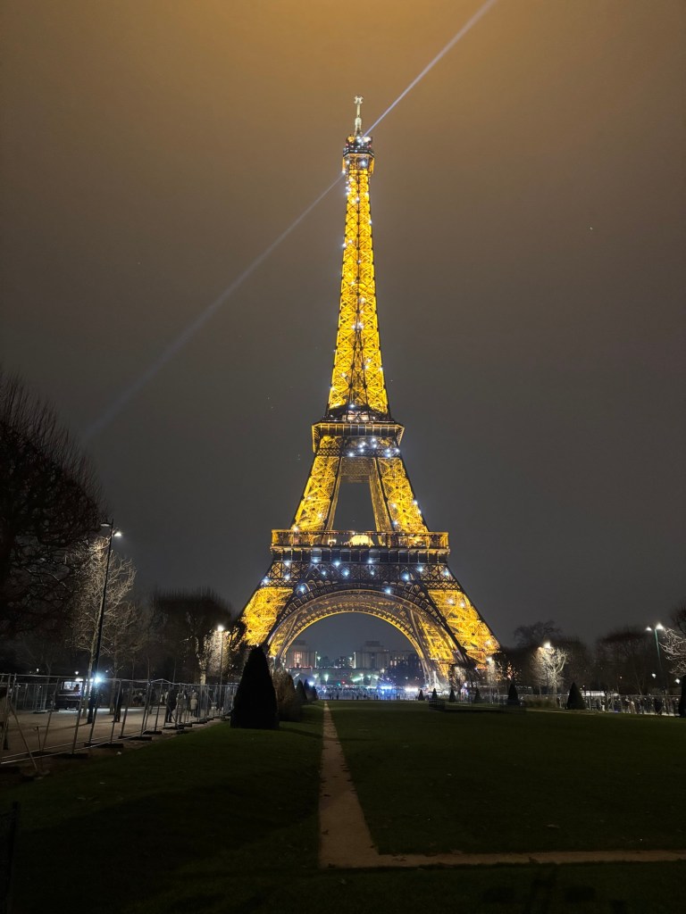 If you, like us, visit in the winter, be sure to dress for the weather plus a bit of added altitude – this really isn’t an “indoors” experience! On each floor, you should take the time to do a complete lap around so you can take in the panoramic view of the city. It was really fun spotting some of the sites we had seen, passed by, or were going to see the next day as we looked down on the city. Finally, if you can manage it in your itinerary, try to visit around sunset. We climbed the tower right as the sun was starting to set, so we still got a view of the city during daylight. Then we managed to see things light up as night fell. There was no specific plan for when we would leave the tower, but coincidentally, we had left the building and walked down the Champs de Mars just in time to turn around and see the tower light up for the hourly light show at 7pm. Try to stick around for this, or swing by on another night when you’re in Paris to see the tower light up!