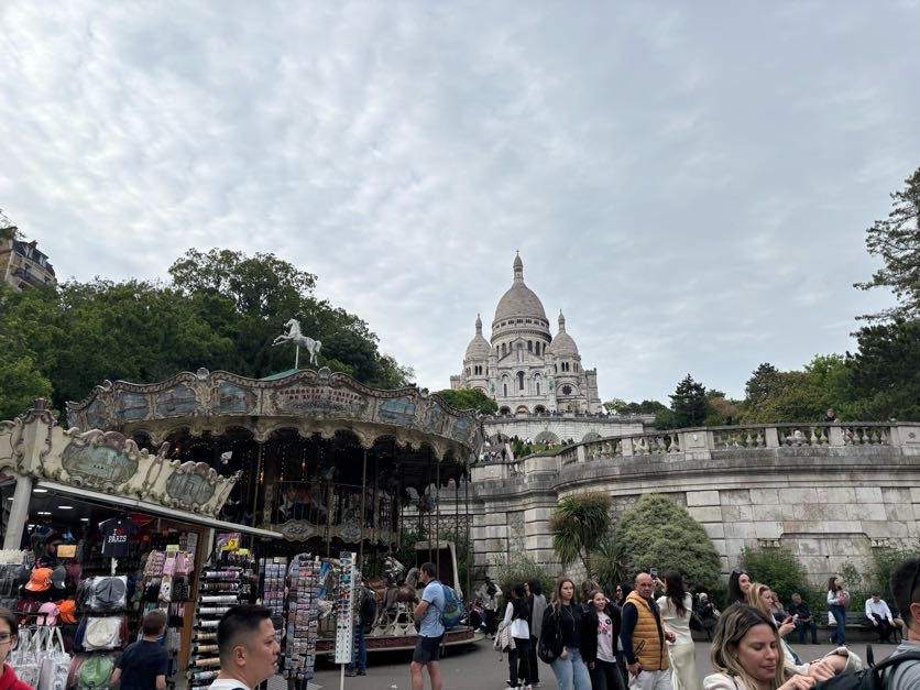 On the return to Paris instead of heading straight to our hotel, we took a little detour to the artistic Montmartre neighborhood. This neighborhood is in a particularly hilly area and features a long windy road, or steep staircase, to the top of the Sacre Couer basilica where you can enjoy a panoramic view of Paris. If you choose to go here, be extra mindful of your belongings as this is a hotspot for pickpockets. Other than that though, it’s a gorgeous overlook and a really beautiful basilica as well.